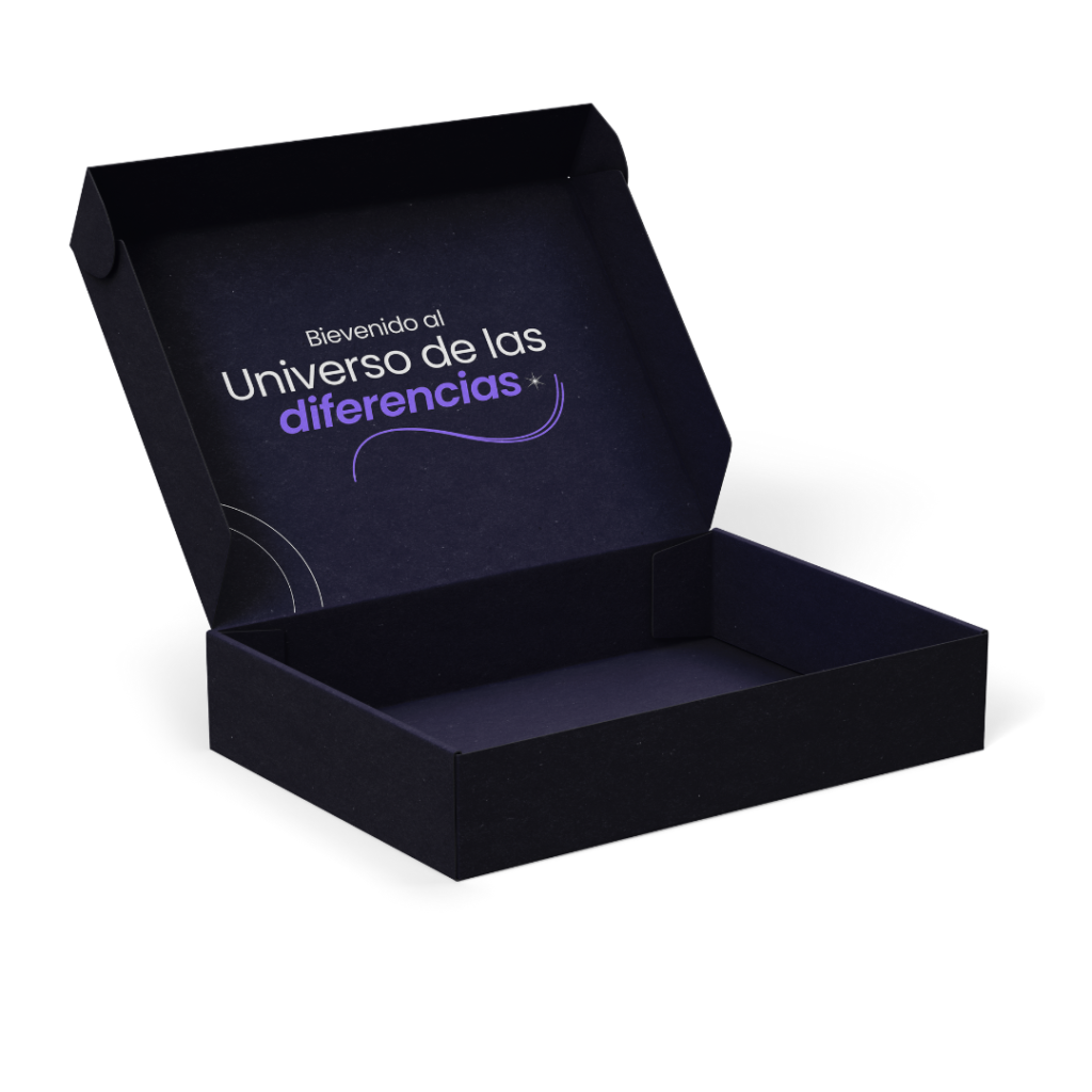 Cada elemento dentro de la caja tiene un propósito: conectar, ayudar, sorprender y hacer visible la idea de que las diferencias, cuando se unen, crean algo nuevo.